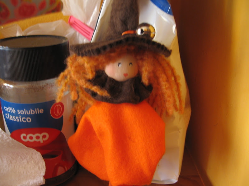 La mia partner in questo gioco è stata Silvia, che mi ha inviato un bellissimo cuscinetto profumato alla cannella, lavanda e chiodi di garofano, a forma di zucca con una scritta a punto croce e una streghetta porta caramelle per Tommy!